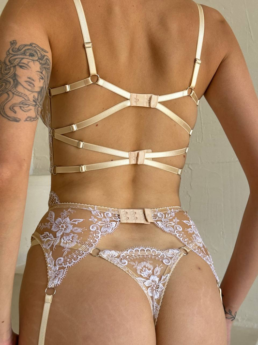 Lingerie white “Peekaboo“ open thong shelf Bra